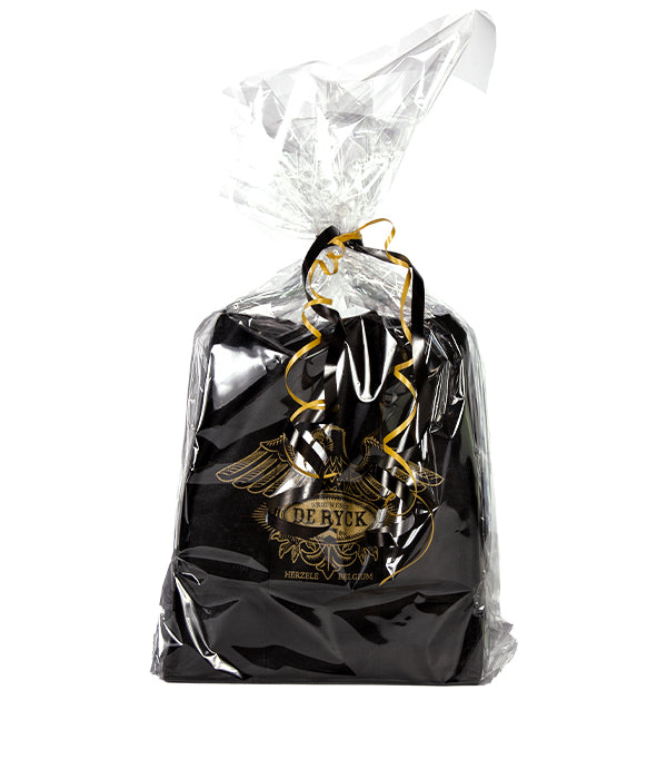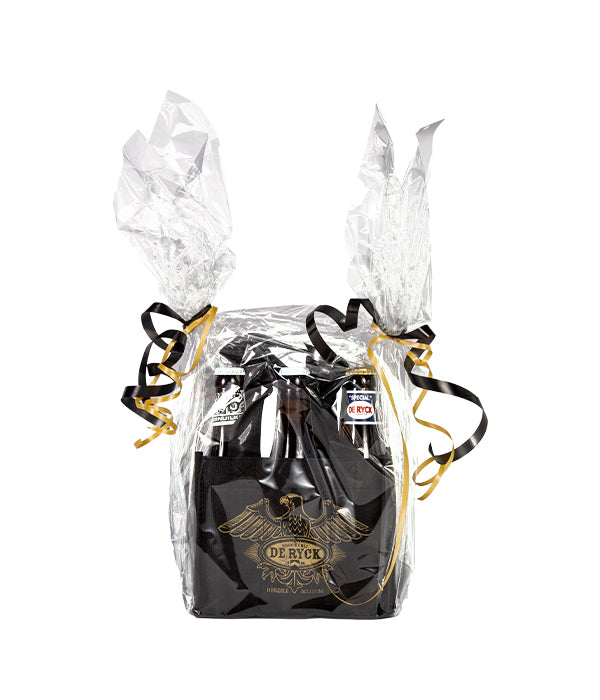 Verwen je familie en vrienden met een heerlijk kennismakingspakket van De Ryck verpakt in deze handige en feestelijke textieltas met onderverdelingen.